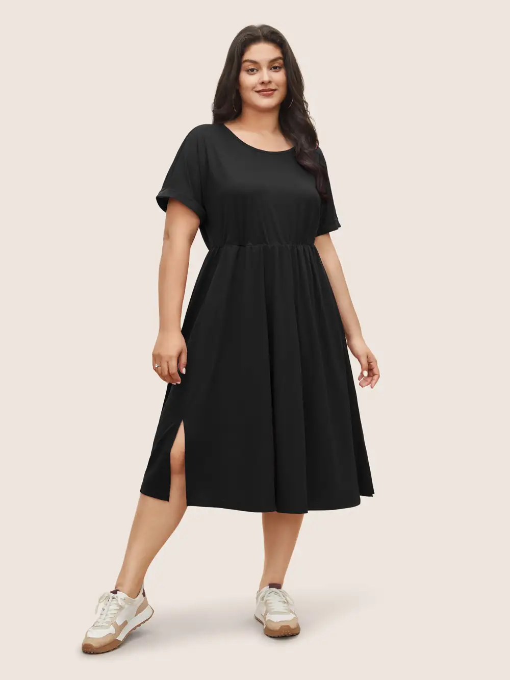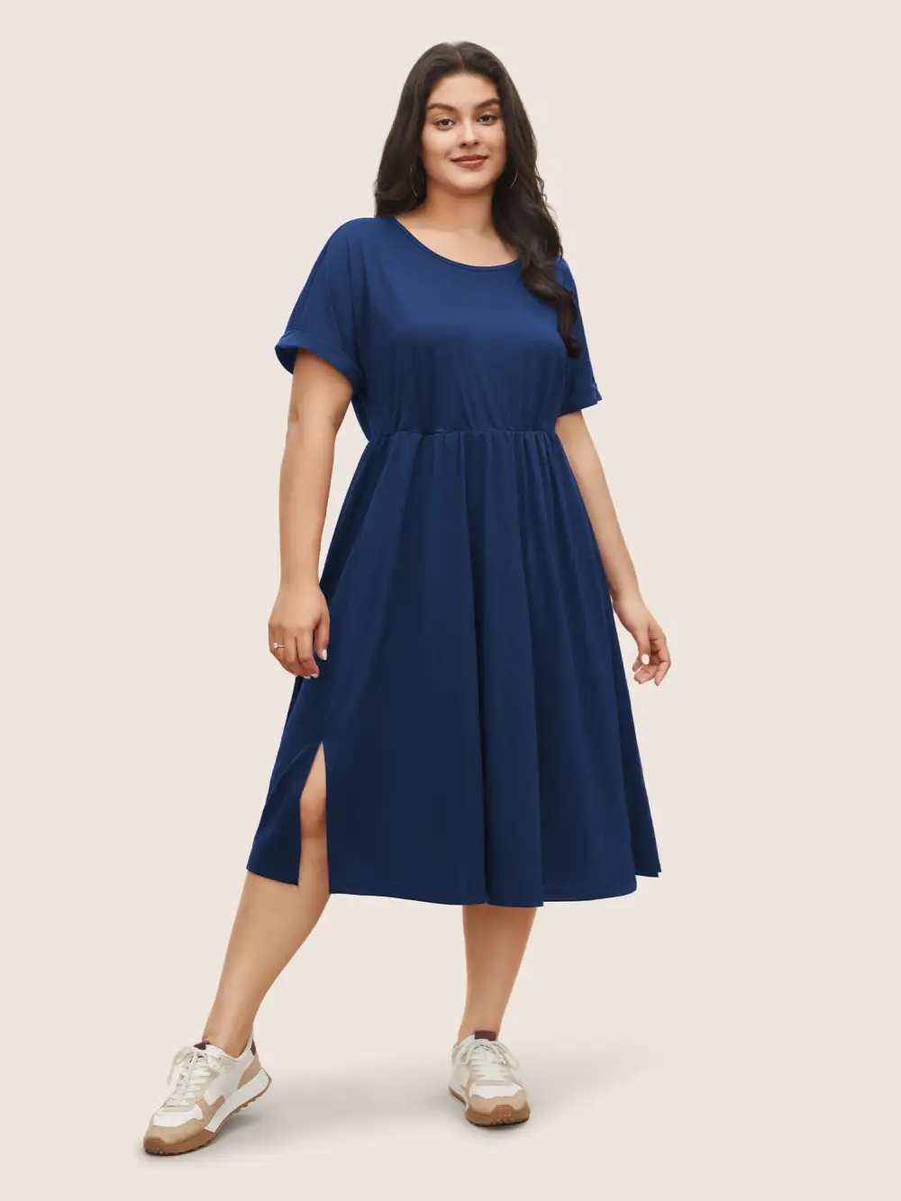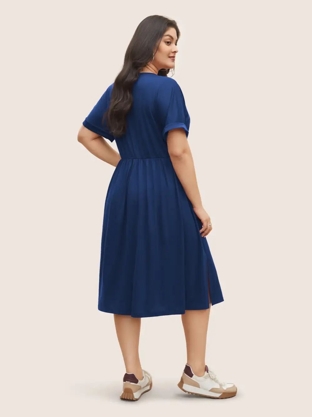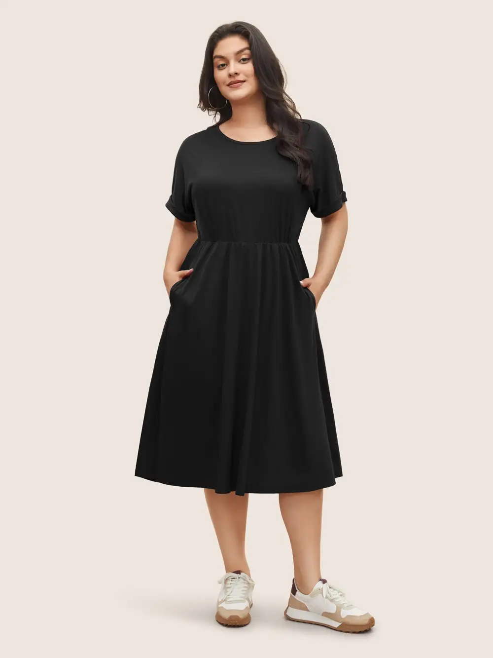 Supersoft Essentials Solid Pocket Cuffed Sleeve Dress