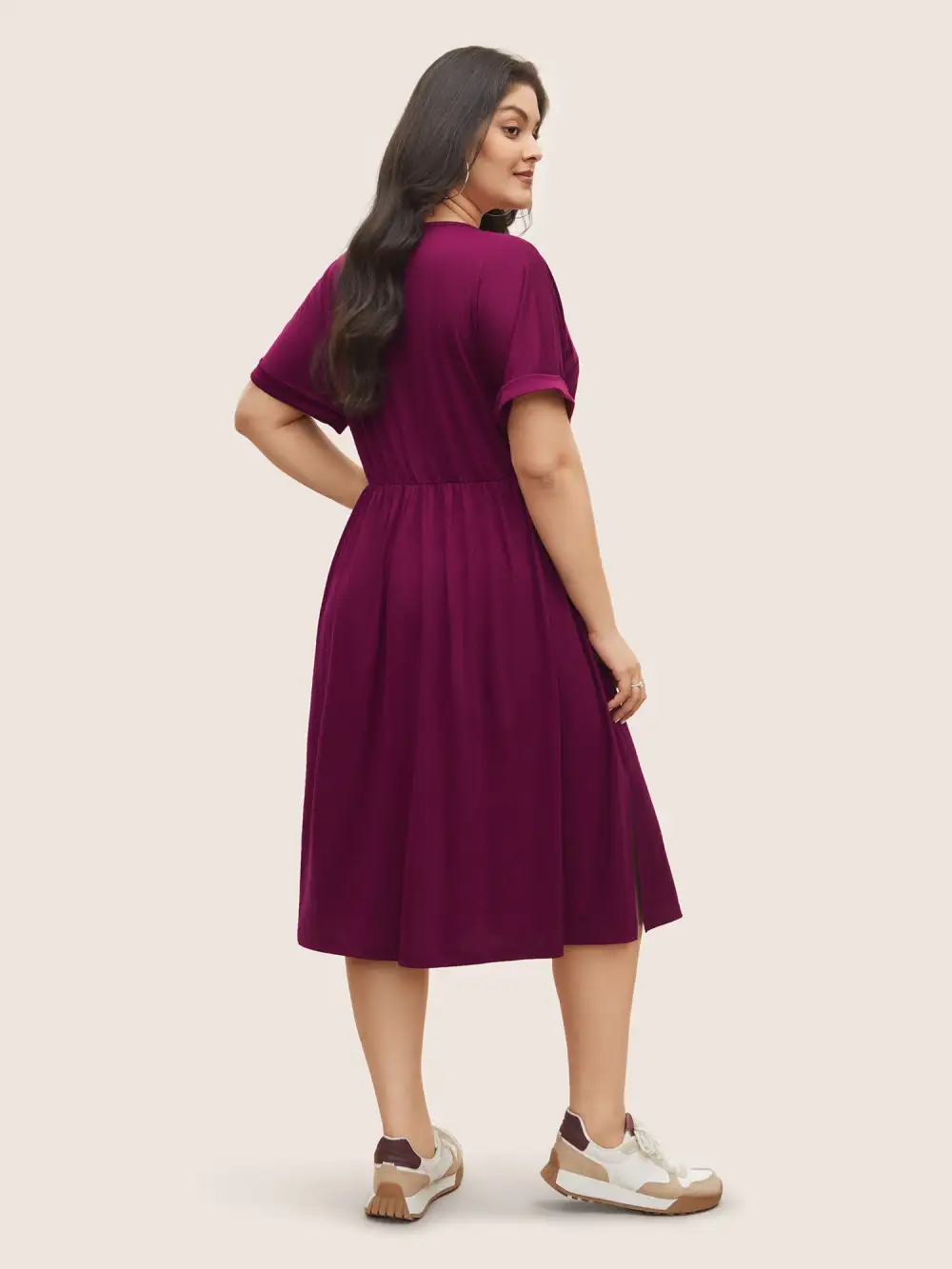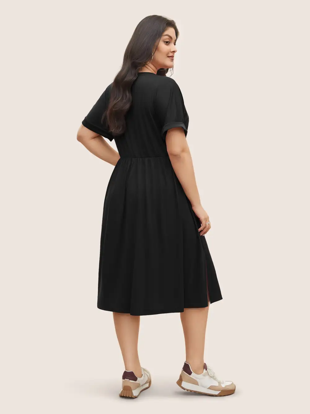 • Supersoft Essentials Solid Pocket Cuffed Sleeve Dress